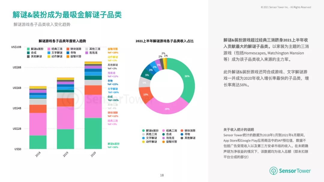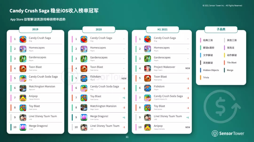 Sensor Tower:2021 年解谜与装扮移动游戏增长 56%,成收入最高品类